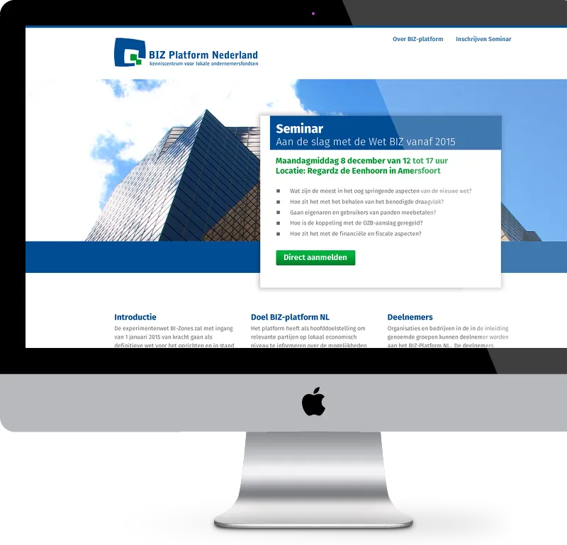 Op basis van het gemaakte logo is een website ontwerpen en gebouwd met een zakelijke en frisse uitstraling. De schaalbaarheid, dus de werking op alle devices, viel goed in de smaak bij BIZ-platform.
