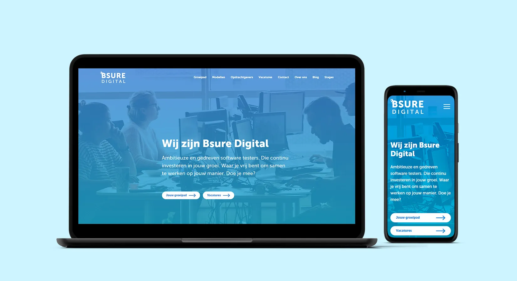 We zijn er trots op dat we de nieuwe huisstijl en website voor Bsure Digital hebben mogen ontwikkelen. Bsure Digital is een innovatief bedrijf gespecialiseerd in software testingen wij zijn blij dat we onze expertise konden inzetten om hun online aanwezigheid naar een hoger niveau te tillen.